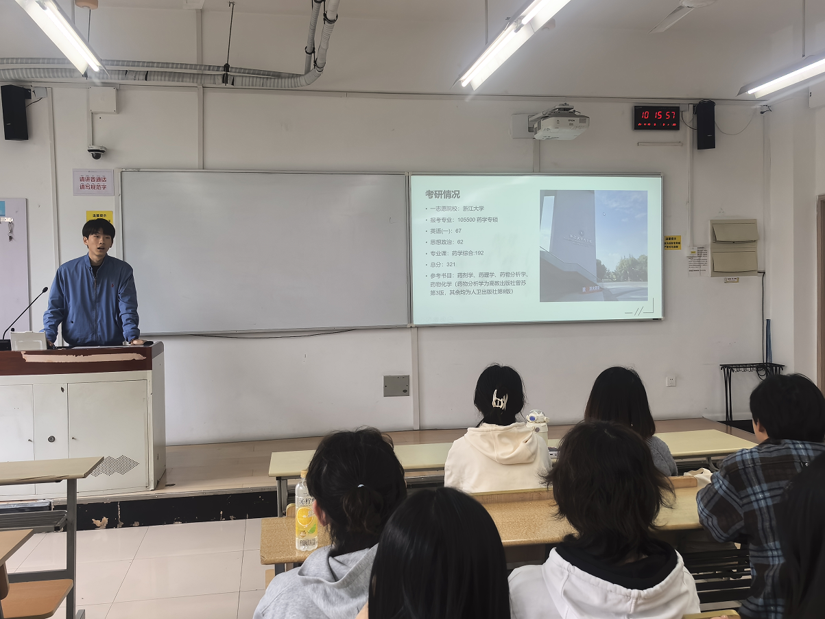 为进一步推进学院优良学风建设,切实服务学生成长成才,4月17日上午,制药工程专业在教室B207成功举办考研经验分享会。本次活动也是学生党支部“一支部一实事”工程的重要举措。会议由辅导员主持,吸引了众多低年级有意考研的同学参加。
